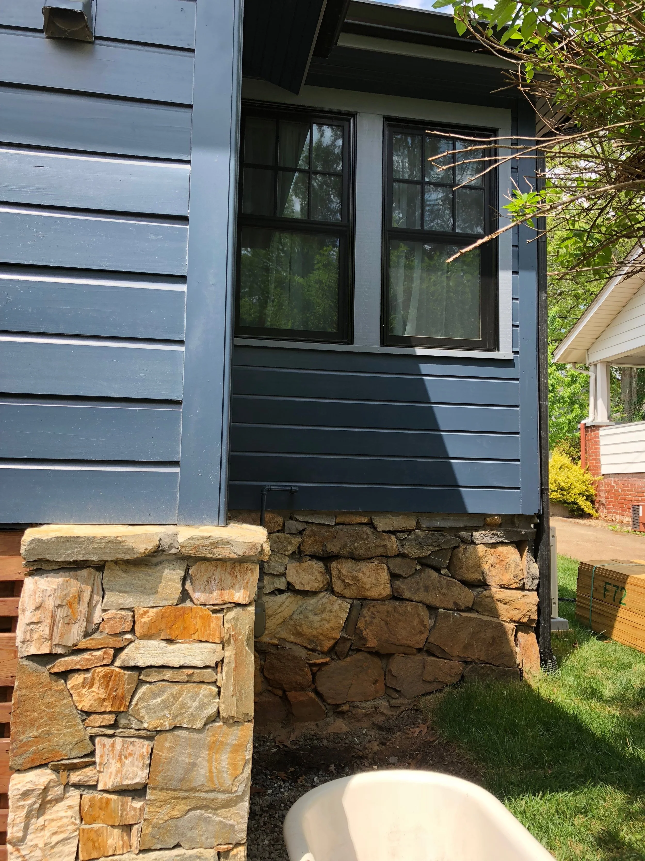 On the exterior we re-siding a good portion of the house using the same German lap siding that we found on the house. This really helped tie this house to its original charm. We also removed the old gutters and replaced the soffit and fascia. On the tiny house we kept very similar details so the two homes feel connected even though they are separated by the back yard.